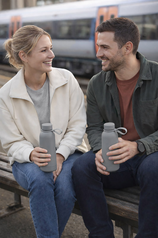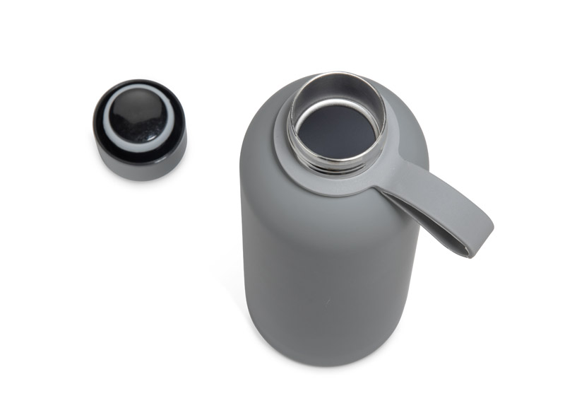 Butelka termiczna NUVIO o pojemności 500 ml wykonana jest ze stali nierdzewnej o podwyższonym standardzie, z podwójną ścianką i izolacją próżniową, która utrzymuje temperaturę napoju nawet do 14 godzin. Gumowana powierzchnia typu soft touch nadaje jej przyjemny w dotyku i nowoczesny wygląd, a silikonowy uchwyt ułatwia przenoszenie. Klasyczna, gwintowana zakrętka zapewnia szczelne zamknięcie. To praktyczna butelka termiczna, która sprawdzi się w biurze, w podróży i na co dzień.