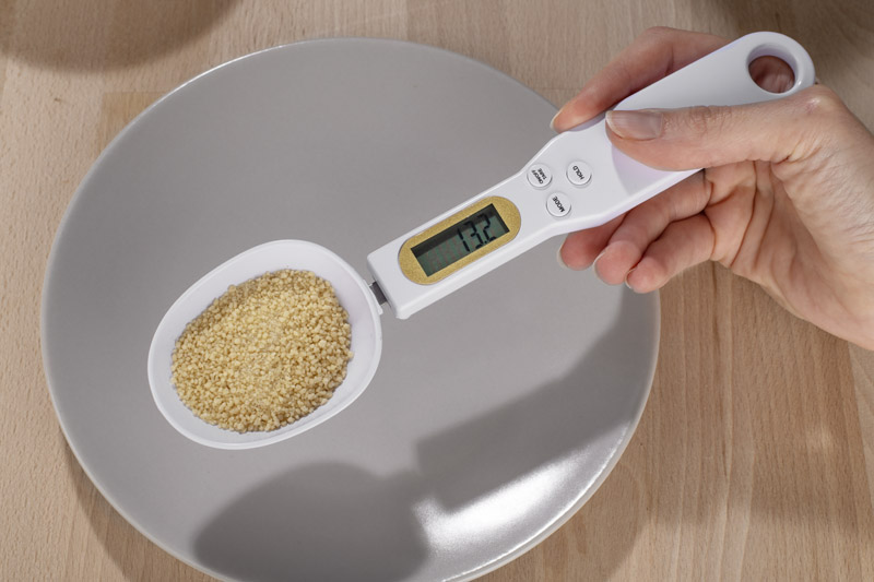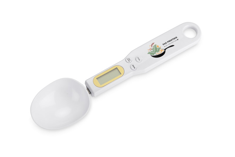 Łyżka z wagą elektroniczną SPOONI to praktyczne narzędzie, które ułatwia precyzyjne odmierzanie składników sypkich i płynnych. Dzięki wbudowanemu wyświetlaczowi pozwala szybko sprawdzić wagę produktu bez konieczności używania tradycyjnej wagi kuchennej. Pojemność łyżki wynosi 30 ml, co sprawia, że idealnie nadaje się do odmierzania przypraw, kawy, cukru czy mąki. Zasilana baterią CR2032 (niedołączoną do zestawu), jest lekka i wygodna w użyciu. To funkcjonalny gadżet, który sprawdzi się w kuchni, gastronomii lub jako praktyczny upominek z możliwością znakowania.