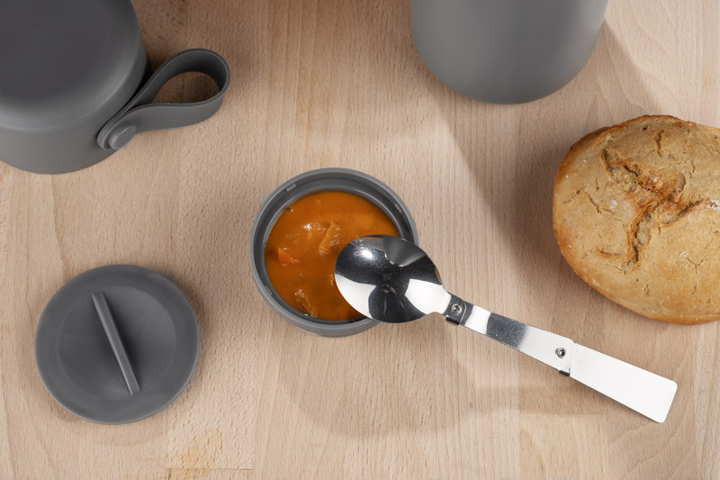 Pojemnik termiczny NOMIO 600 ml to funkcjonalne rozwiązanie do przenoszenia ciepłych posiłków. Wyposażony w szczelne, zakręcane wieczko i gumowy uchwyt, zapewnia wygodne użytkowanie w każdych warunkach. Wewnątrz znajduje się dodatkowy pojemnik z praktyczną, składaną łyżką — wszystko w jednym, kompaktowym zestawie. Dzięki właściwościom termicznym utrzymuje temperaturę jedzenia przez dłuższy czas, co czyni go idealnym towarzyszem w pracy, w podróży lub w terenie. Świetny wybór dla branży outdoor, eventowej i mobilnych zespołów sprzedażowych.
