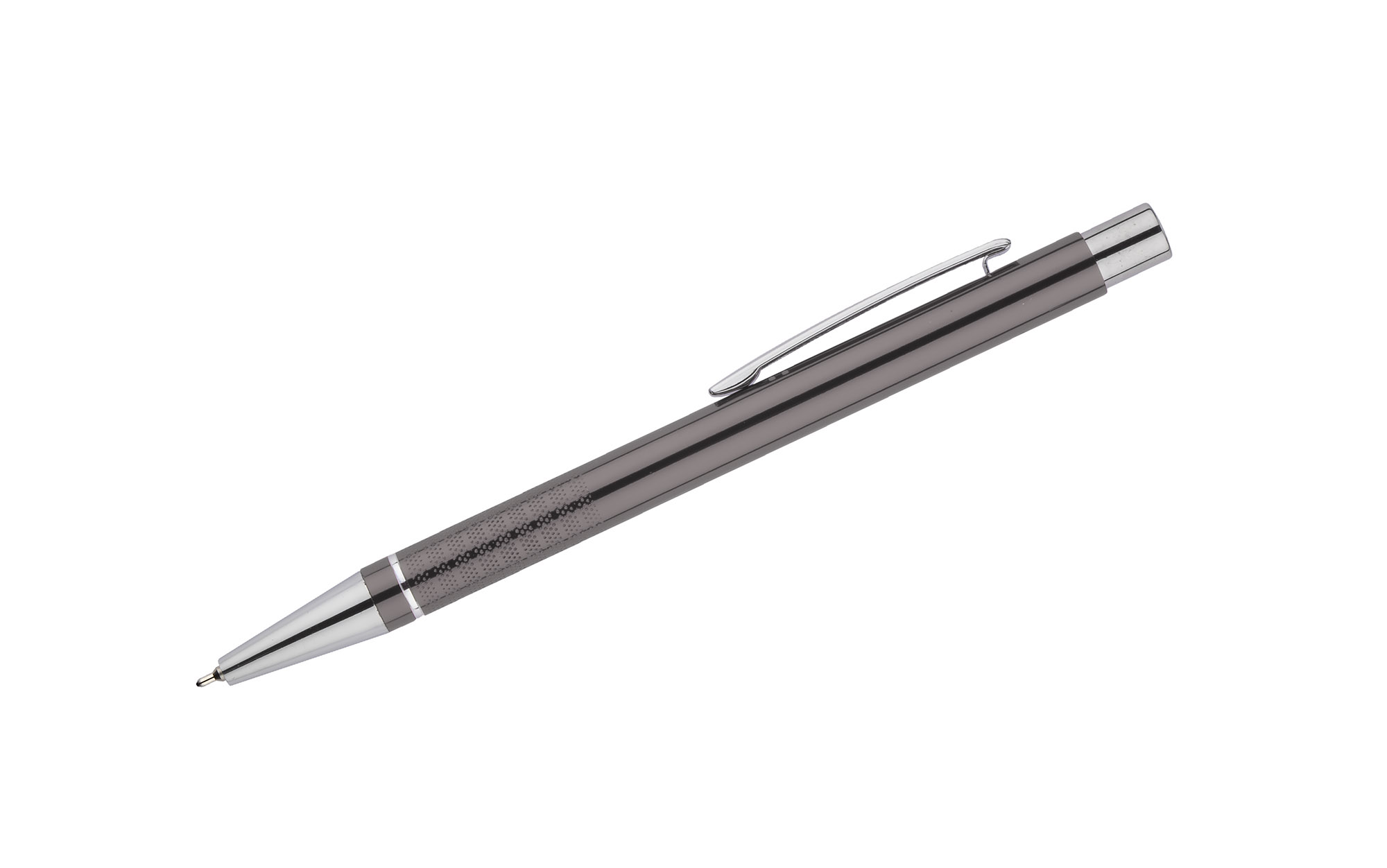 Długopis BONITO to elegancki metalowy długopis w metalicznych kolorach z chromowanymi wykończeniami. Wykonany z wysokiej jakości aluminium, korpus długopisu ozdobiony jest srebrnym ringiem oraz paskami o delikatnie chropowatej strukturze. Długopis wyposażony jest w wkład z tuszem półżelowym w kolorze czarnym o grubości 0,7 mm.