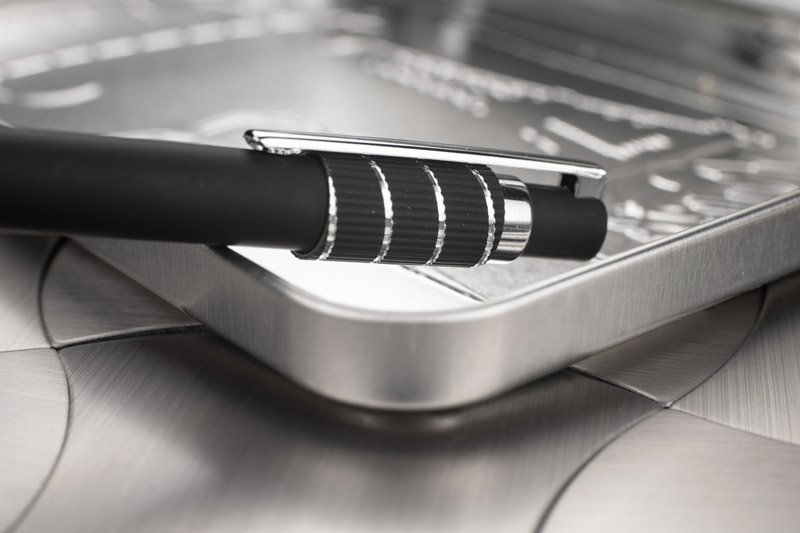 SPINO wyróżnia się połączeniem klasycznego długopisu z popularnym spinnerem antystresowym, umieszczonym tuż pod klipsem. Obudowa pokryta miękkim w dotyku wykończeniem soft touch zapewnia komfort pisania. Spinner z ozdobnymi, srebrnymi elementami nie tylko przyciąga wzrok, ale też pozwala rozładować napięcie podczas pracy lub spotkań. To funkcjonalny gadżet piśmienniczy z elementem zabawy, który doskonale sprawdzi się jako oryginalny nośnik reklamy.