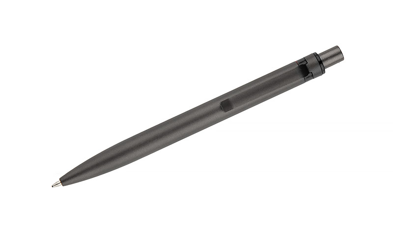 Długopis RAL wykonany jest z recyklingowanego aluminium w eleganckim, grafitowym kolorze z chromowanym wykończeniem. Aluminiowy klips zakończony kolorowym akcentem nadaje mu nowoczesny i rozpoznawalny wygląd. Mechanizm wysuwu jest automatyczny, co zapewnia wygodę i szybkie użycie w każdej sytuacji. Smukła forma oraz przyjemny w dotyku korpus gwarantują komfort pisania. Wkład typu G2 o grubości linii 1,0 mm zapewnia płynny i precyzyjny zapis. To praktyczny gadżet reklamowy, który świetnie sprawdzi się w biurze i podczas spotkań biznesowych.