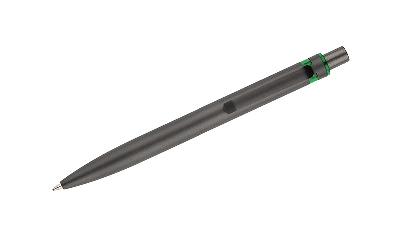 Długopis RAL wykonany jest z recyklingowanego aluminium w eleganckim, grafitowym kolorze z chromowanym wykończeniem. Aluminiowy klips zakończony kolorowym akcentem nadaje mu nowoczesny i rozpoznawalny wygląd. Mechanizm wysuwu jest automatyczny, co zapewnia wygodę i szybkie użycie w każdej sytuacji. Smukła forma oraz przyjemny w dotyku korpus gwarantują komfort pisania. Wkład typu G2 o grubości linii 1,0 mm zapewnia płynny i precyzyjny zapis. To praktyczny gadżet reklamowy, który świetnie sprawdzi się w biurze i podczas spotkań biznesowych.
