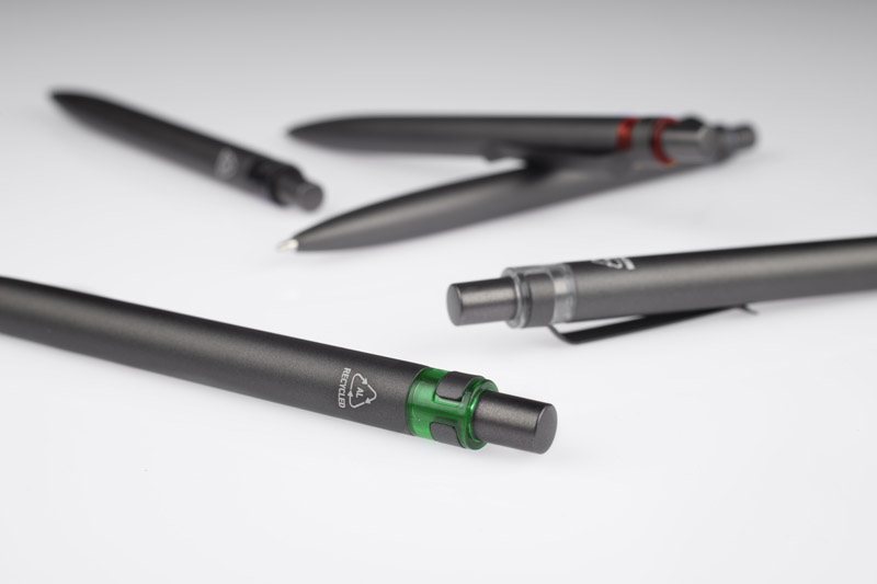 Długopis RAL wykonany jest z recyklingowanego aluminium w eleganckim, grafitowym kolorze z chromowanym wykończeniem. Aluminiowy klips zakończony kolorowym akcentem nadaje mu nowoczesny i...…