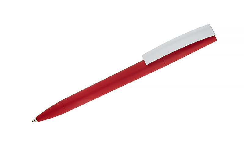 Długopis ZENO wykonany jest z tworzywa o matowym, przyjemnym w dotyku wykończeniu typu soft touch. Jego nowoczesna forma i kontrastujący biały klip nadają mu rozpoznawalny wygląd. Mechanizm przekręcany typu twist umożliwia wygodne wysuwanie wkładu X20 o grubości pisania 1,0 mm. Lekki i poręczny, sprawdzi się w codziennym użytkowaniu, a także jako praktyczny nośnik reklamy z miejscem na logo.