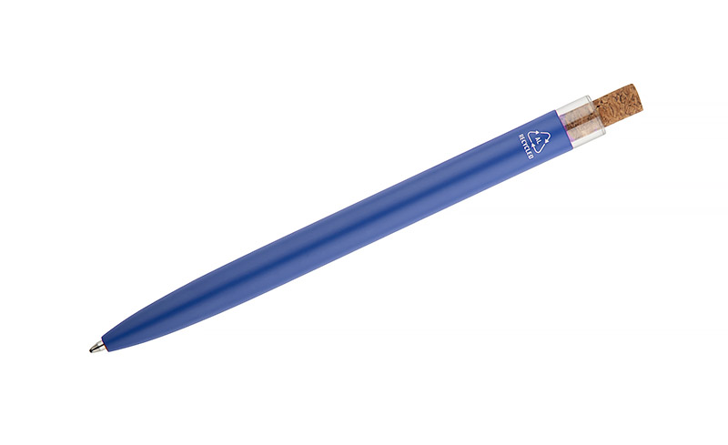 Długopis KORIN wykonany jest z recyklingowanego aluminium i pokryty lakierowanym wykończeniem, które nadaje mu gładką, satynową powierzchnię. Wyposażony w automatyczny mechanizm, wkład typu G2 o grubości pisania 1,0 mm oraz metalowy klips w kolorze grafitowym. Korkowy przycisk stanowi ciekawy akcent, podkreślający nowoczesny charakter długopisu. KORIN jest lekki, solidny i wygodny w codziennym użytkowaniu.