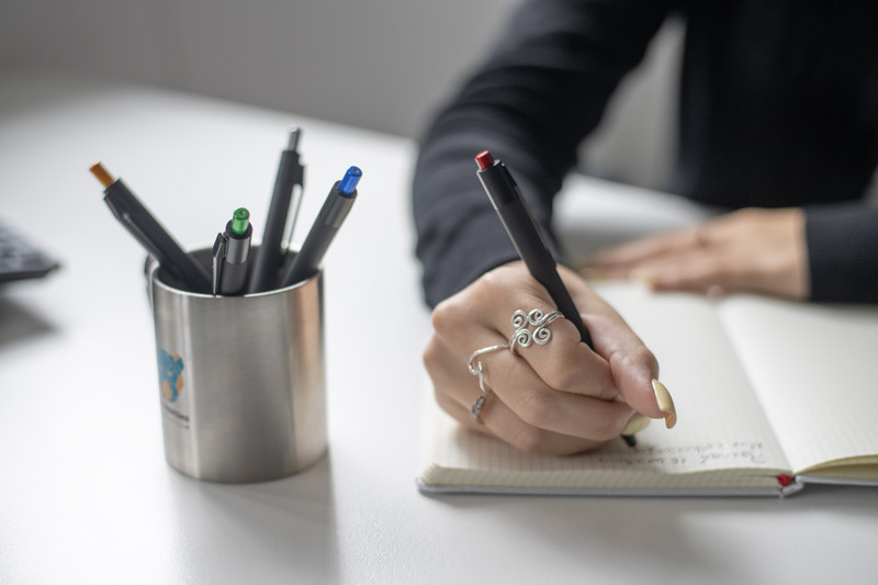 Długopis PAUL to elegancki model o klasycznej formie i lakierowanym wykończeniu. Czarny korpus uzupełnia kolorowy przycisk oraz efektowne, lustrzane logo, które staje się widoczne po wykonaniu graweru. Mechanizm automatyczny ułatwia codzienne użytkowanie, a wkład typu X20 z tuszem o grubości pisania 0,7 mm zapewnia płynny, równy zapis. Połączenie połysku i kontrastowych detali nadaje długopisowi nowoczesny charakter, idealny do znakowania reklamowego.