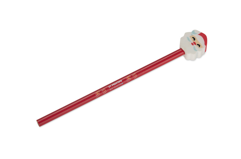 Ołówek CHRISTMAS to świąteczny upominek w czerwonym wydaniu, zakończony gumką w kształcie głowy Mikołaja. Wesoły, kolorowy akcent nadaje mu sezonowego charakteru i przyciąga uwagę najmłodszych. Idealny jako dodatek do zestawów mikołajkowych, kalendarzy adwentowych lub jako drobny gadżet reklamowy w okresie świątecznym.