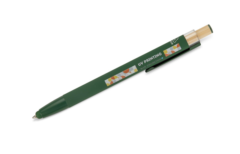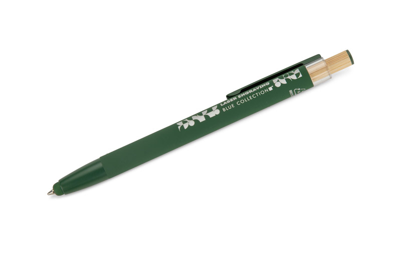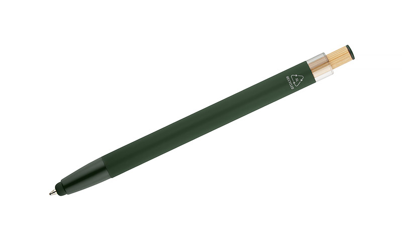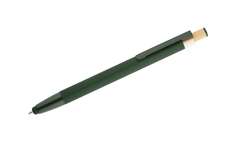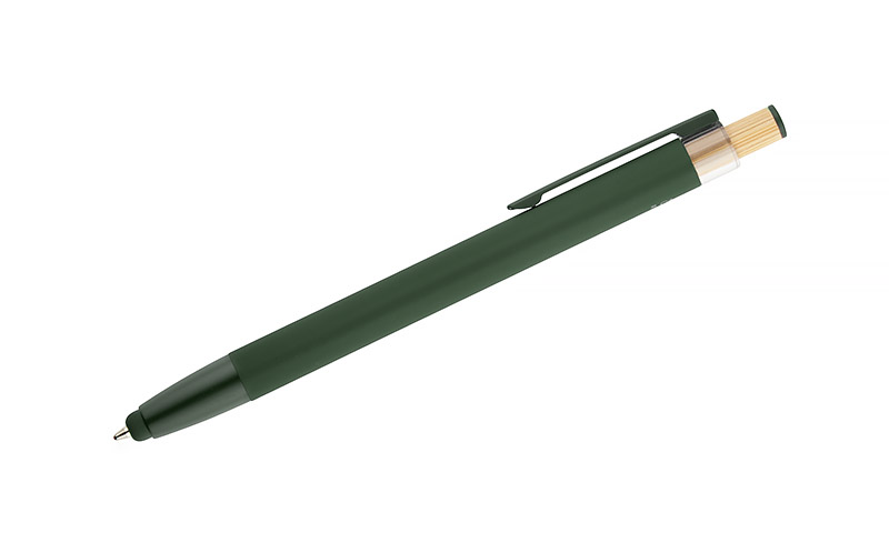 Długopis ALPEN to połączenie nowoczesnego designu i wygody pisania. Wykonany z recyklingowanego aluminium z miękkim w dotyku, gumowanym wykończeniem typu soft touch, zapewnia komfortowe użytkowanie każdego dnia. Wyposażony jest w funkcję touch pena do obsługi ekranów dotykowych oraz metalowy klip, który ułatwia przypięcie do notesu lub kieszeni. Charakterystyczny guzik z bambusa dodaje całości naturalnego akcentu, a kolorowe detale podkreślają jego nowoczesny styl. Wkład typu G2 o grubości linii 1,0 mm gwarantuje płynne pisanie i wysoką trwałość.