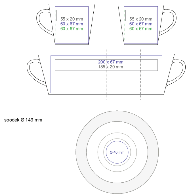 Filiżanka o prostym, klasycznym kształcie. Wykonana z wysokiej jakości europejskiej porcelany. Posiada ergonomiczne ucho i duże pole w zakresie nanoszenia zdobień.