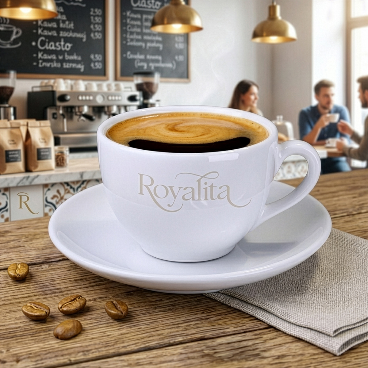 Klasyczna filiżanka o grubych ściankach i eleganckim kształcie. Wykonana z pięknej porcelany europejskiej. Posiada wygodne i ergonomiczne ucho.