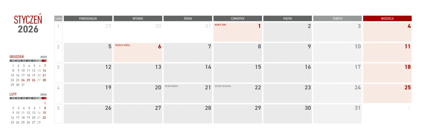 Wygodny kalendarz stojący na biurko z przejrzystym kalendarium w układzie trójdzielnym z poręcznymi...