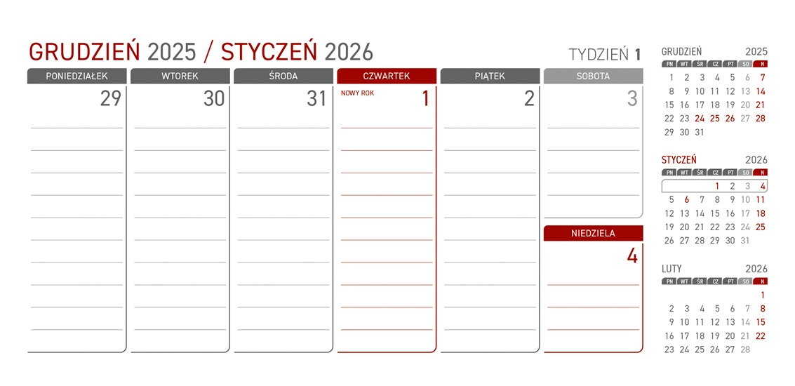 KALENDARZ BIURKOWY STANDARD - TYGODNIOWY