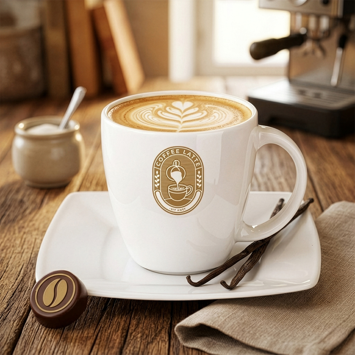 Porcelanowy set złożony z eleganckiego kubka oraz dedykowanego talerzyka. Cechą charakterystyczną tego fasonu są delikatne kwadratowe wykończenia widoczne w jego dolnej części.