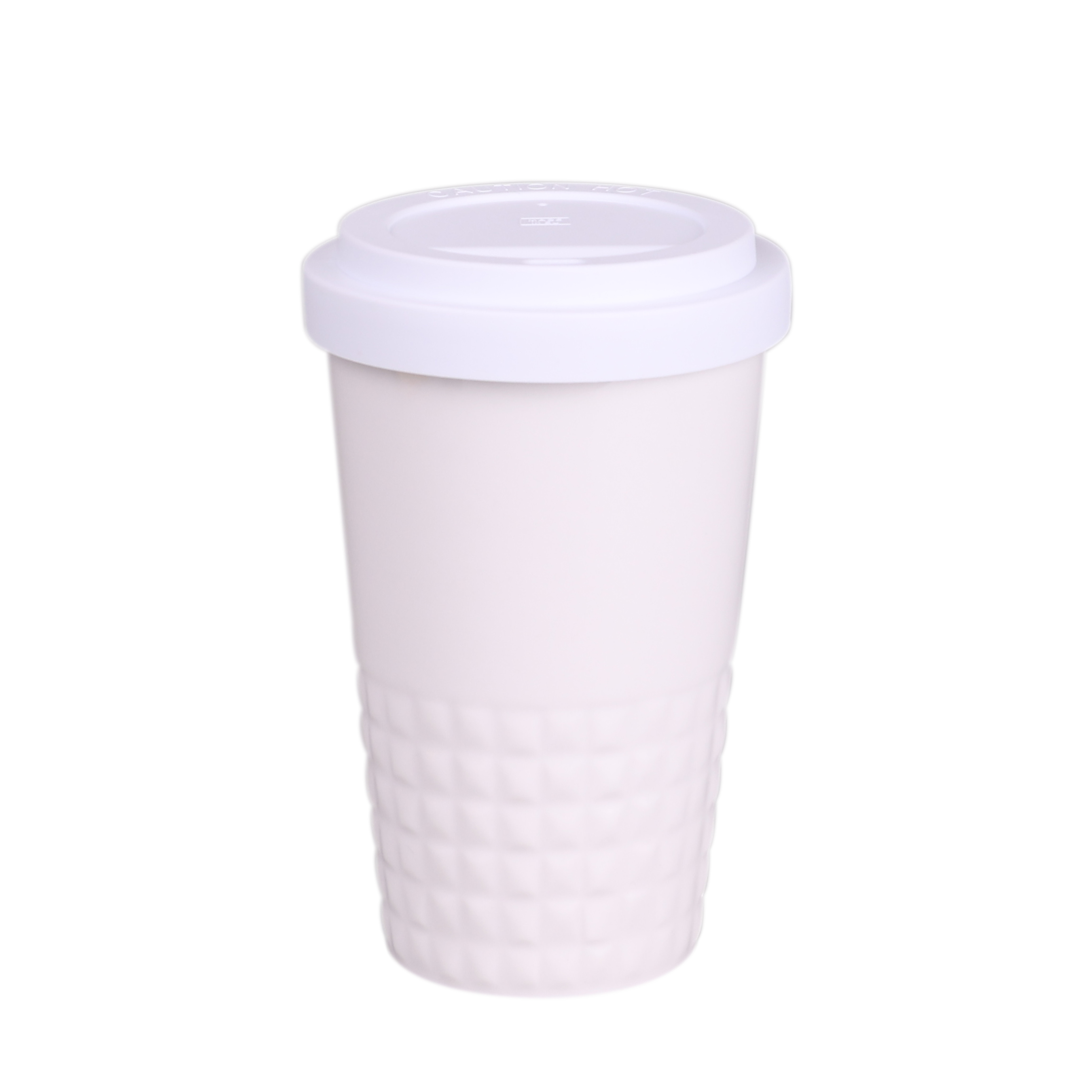 Designerski kubek mobilny wykonany z porcelany. Posiada charakterystyczne wykończenie dolnej części w postaci wypustek. Model skierowany dla osób aktywnych, miłośników wycieczek i podróży. Dzięki rzadko spotykanej, wewnętrznej strukturze podwójnych ścianek z porcelany charakteryzuje się podwyższonym poziomem izolacji termicznej. Posiada przykrywkę dostępną w 8 kolorach: biały, pomarańczowym, czerwonym, zielonym, granatowym, brązowym, czarnym i szarym.