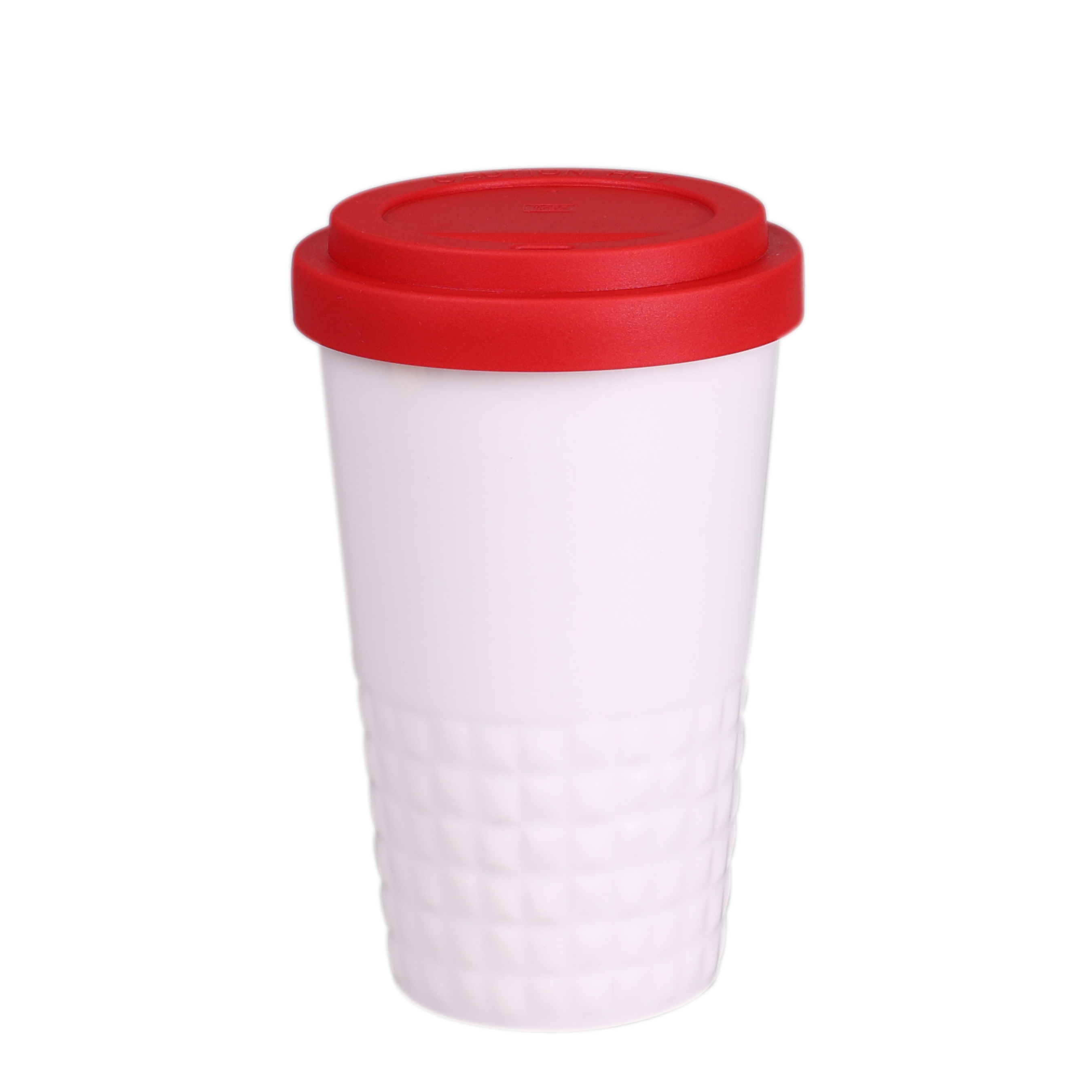 Designerski kubek mobilny wykonany z porcelany. Posiada charakterystyczne wykończenie dolnej części w postaci wypustek. Model skierowany dla osób aktywnych, miłośników wycieczek i podróży. Dzięki rzadko spotykanej, wewnętrznej strukturze podwójnych ścianek z porcelany charakteryzuje się podwyższonym poziomem izolacji termicznej. Posiada przykrywkę dostępną w 8 kolorach: biały, pomarańczowym, czerwonym, zielonym, granatowym, brązowym, czarnym i szarym.