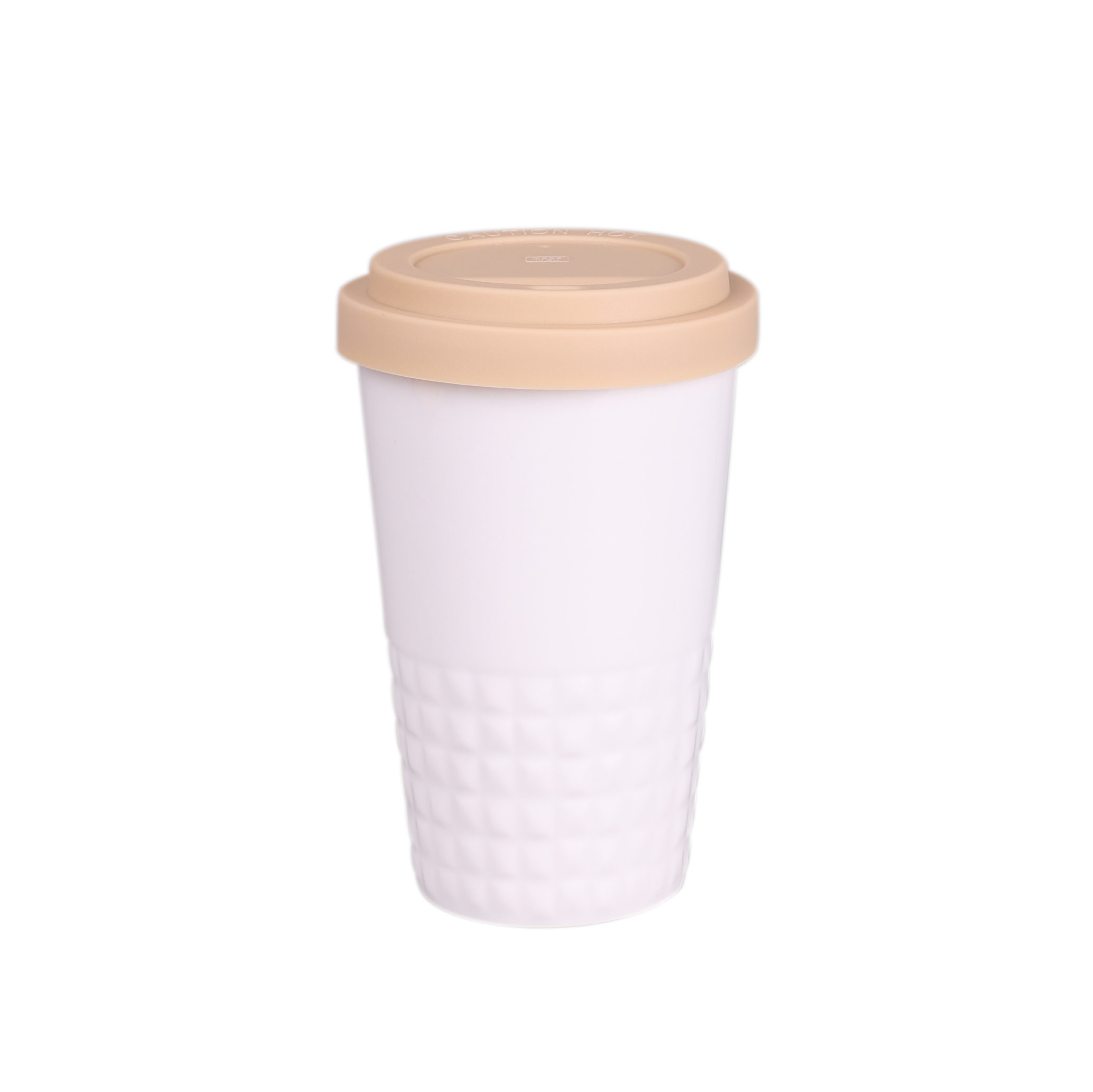 Designerski kubek mobilny wykonany z porcelany. Posiada charakterystyczne wykończenie dolnej części w postaci wypustek. Model skierowany dla osób aktywnych, miłośników wycieczek i podróży. Dzięki rzadko spotykanej, wewnętrznej strukturze podwójnych ścianek z porcelany charakteryzuje się podwyższonym poziomem izolacji termicznej. Posiada przykrywkę dostępną w 8 kolorach: biały, pomarańczowym, czerwonym, zielonym, granatowym, brązowym, czarnym i szarym.