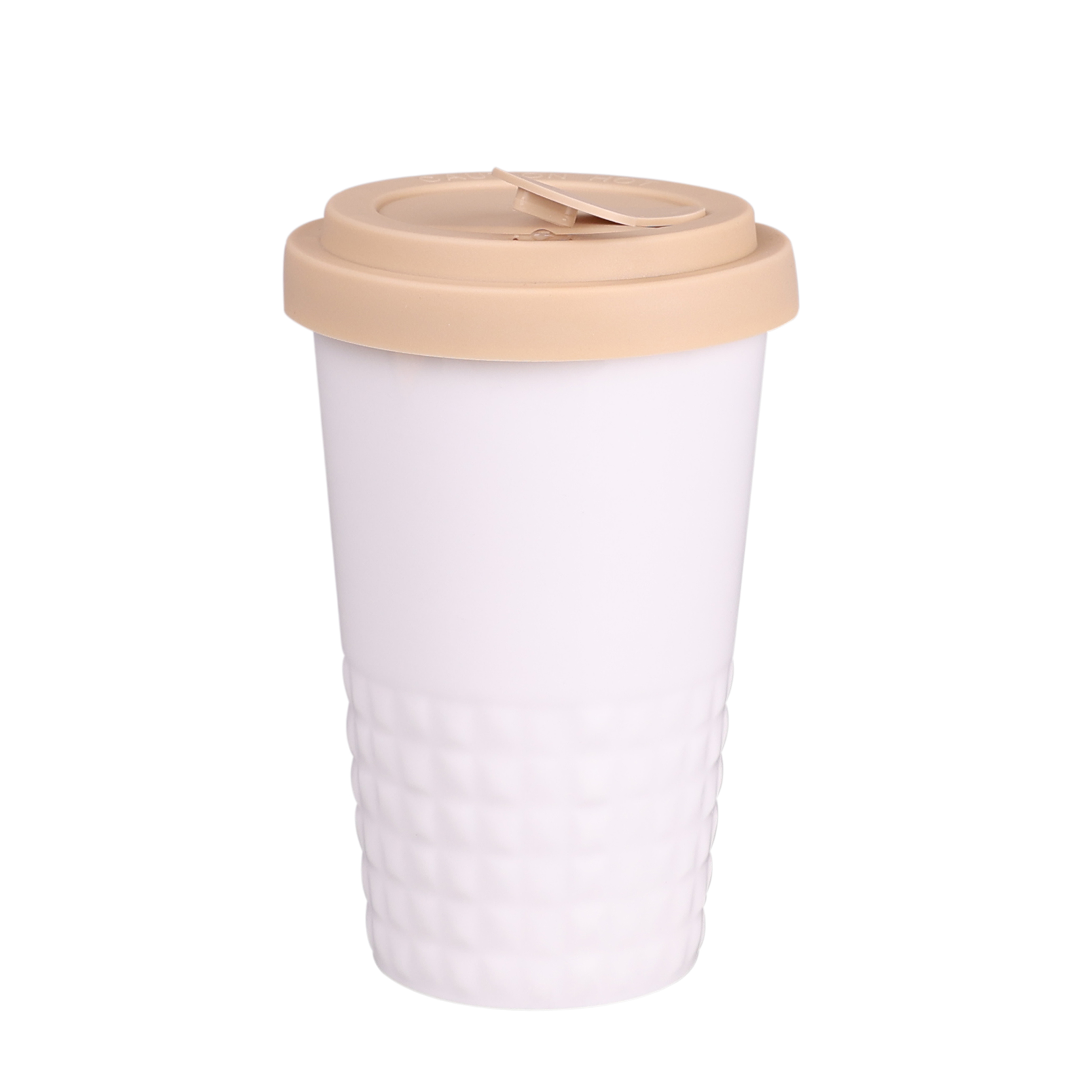 Designerski kubek mobilny wykonany z porcelany. Posiada charakterystyczne wykończenie dolnej części w postaci wypustek. Model skierowany dla osób aktywnych, miłośników wycieczek i podróży. Dzięki rzadko spotykanej, wewnętrznej strukturze podwójnych ścianek z porcelany charakteryzuje się podwyższonym poziomem izolacji termicznej. Posiada przykrywkę ze szczelną zatyczką dostępną w kilku kolorach.