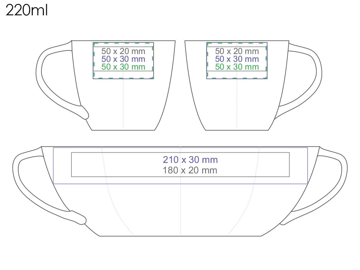 Bestsellerowy model wykonany z białej, wysokiej klasy porcelany. Dzięki oryginalnemu uchwytowi w kształcie fali, wspaniale przyciągnie wzrok do promowanego brandu.