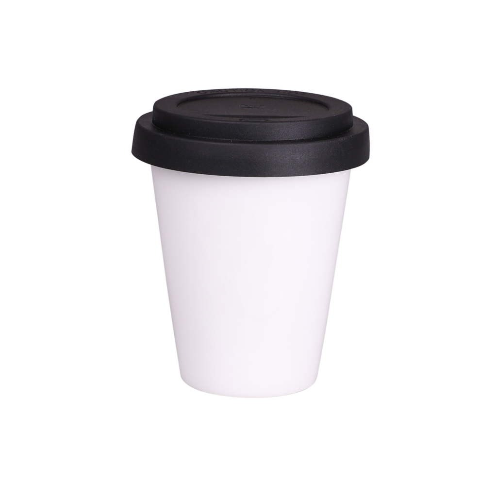 Praktyczny kubek porcelanowy z polimerową przykrywką chroniącą przed przypadkowym rozlaniem napoju. Dzięki rzadko spotykanej, wewnętrznej strukturze podwójnych ścianek z porcelany kubek ten charakteryzuje się podwyższonym poziomem izolacji termicznej. Korpus kubka dostępny w kolorze białym i satin black.