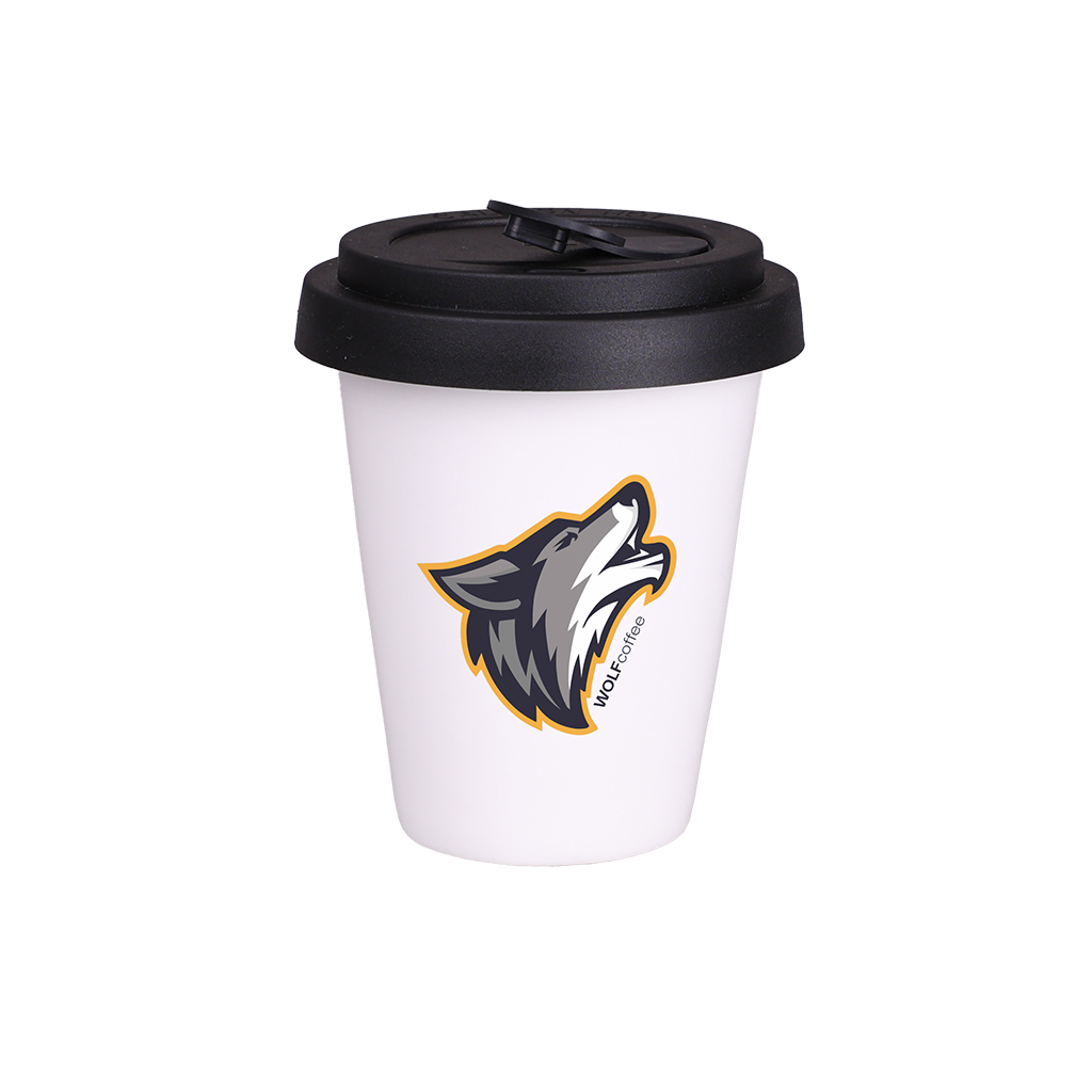 Praktyczny kubek porcelanowy z polimerową przykrywką z zatyczką, chroniącą przed przypadkowym rozlaniem napoju. Dzięki rzadko spotykanej, wewnętrznej strukturze podwójnych ścianek z porcelany kubek ten charakteryzuje się podwyższonym poziomem izolacji termicznej. Korpus kubka dostępny w kolorze białym i satin black.
