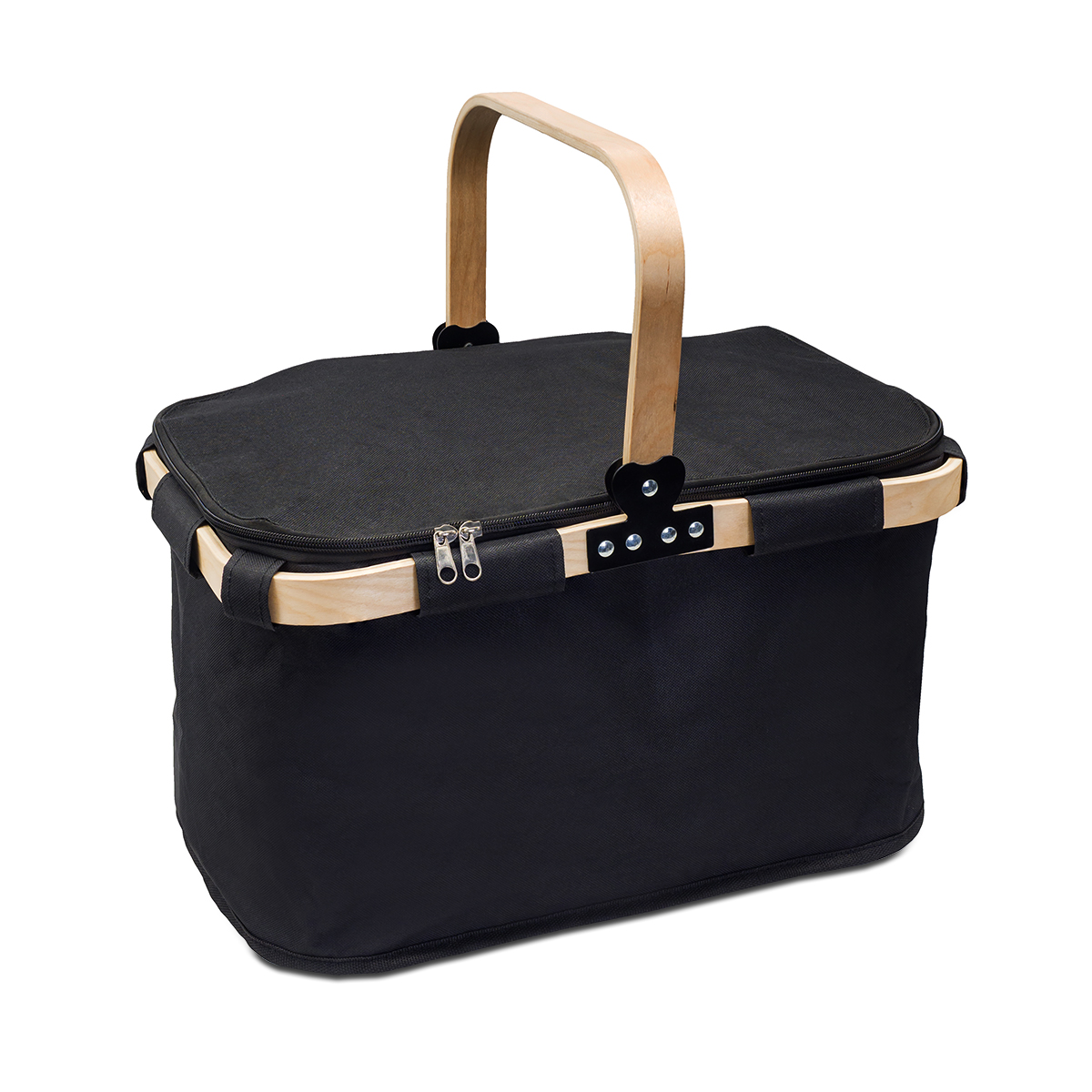 Stylowy i praktyczny kosz termiczny na zakupy z pokrywą zapinaną na zamek błyskawiczny. Drewniana rama i uchwyt dodają elegancji . Kosz zapewnia bardzo dobrą izolację termiczną. Dzięki składanej konstrukcji można go łatwo złożyć na płasko, co ułatwia przechowywanie. Maksymalne obciążenie: 9 kg. Pojemność: 28 litrów.