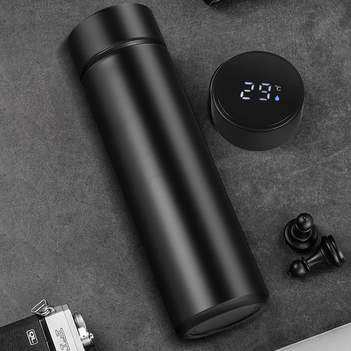 Termos termiczny o pojemności 420 ml z dwiema metalowymi ściankami, świetnie utrzymujący ciepło, szczelny. Wnętrze wykonane ze stali nierdzewnej 18/8 o podwyższonej jakości. Posiada wbudowany w nakrętkę termometr z wymienna baterią CR2032, który przy dotknięciu wyświetlacza pokazuje temperaturę napoju . W zestawie stalowe siteczko do zaparzania herbaty. Utrzymuje temperaturę powyżej 40°C do 15 godzin.