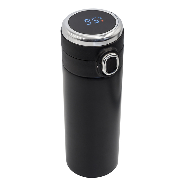 Szczelny termos termiczny z dwiema stalowymi ściankami. Wnętrze wykonane ze stali nierdzewnej 18/8 o podwyższonej jakości. Posiada blokadę zamknięcia pokrywki i wbudowany termometr, który przy dotknięciu wyświetlacza pokazuje temperaturę napoju. Utrzymuje temperaturę powyżej 40°C do 15 godzin.
