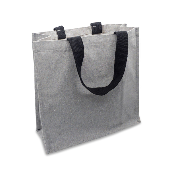 Torba na zakupy z tkaniny z recyklingu (bawełna 310g/m2, poliester, wiskoza) w eleganckim odcieniu melanżu z czarnymi uchwytami.