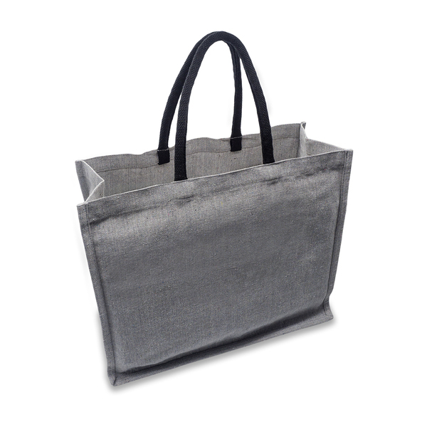 Torba na zakupy z tkaniny z recyklingu (bawełna 310g/m2, poliester, wiskoza) w eleganckim odcieniu melanżu z czarnymi uchwytami.