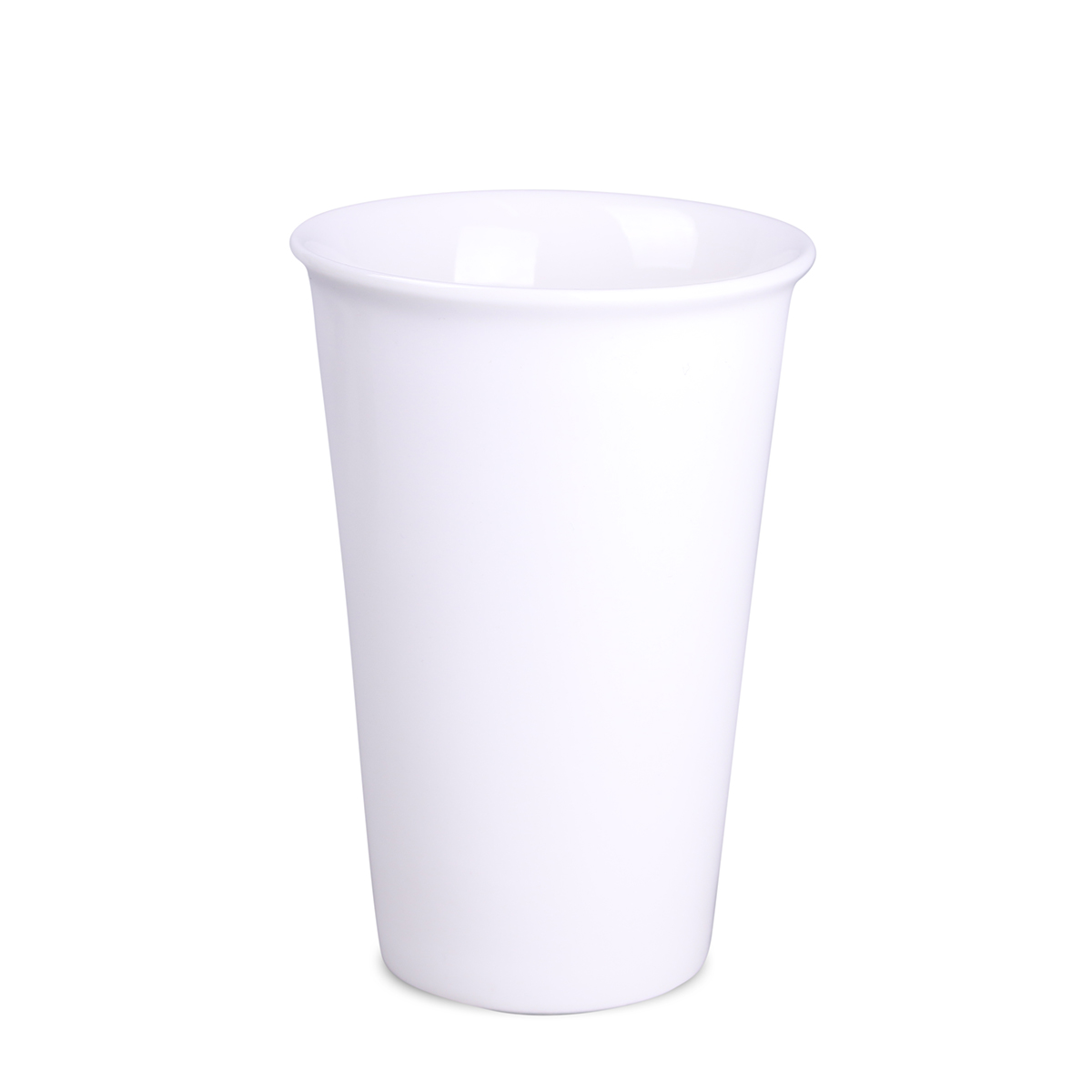Porcelanowy kubek reklamowy bez ucha. Dzięki rzadko spotykanej, wewnętrznej strukturze podwójnych ścianek z porcelany kubek ten charakteryzuje się podwyższonym poziomem izolacji termicznej.